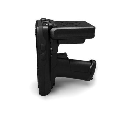 The optional pistol grip comes in handy for extended scanning tasks. The grip can also accommodate a second battery for additional battery life. And there’s the availability of RFID, either built-in for 13.56MHz applications, or via the external 923-925MHz UHF module with a read range of 12+ feet or 3.5+ meter.